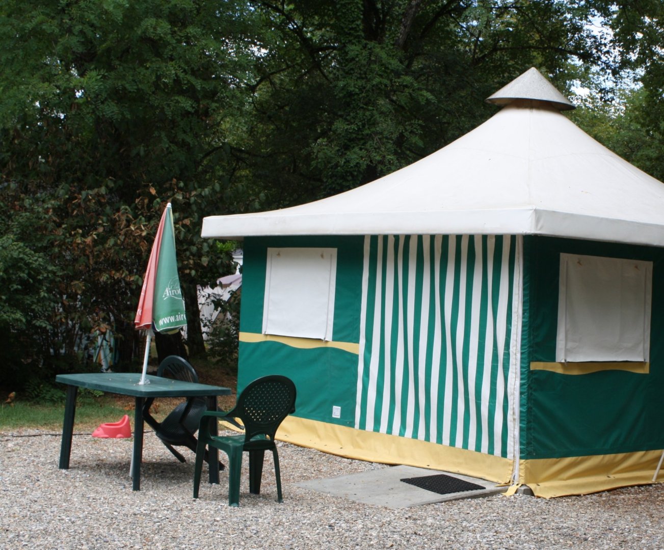Enjoy sleeping in a tent, without giving up on comfort: these bungalow tents are equipped with a kitchen (tableware, cooking plate, and fridge) and two bedrooms for a capacity of 5 persons. This rental does not have a bathroom but is situated near the sanitary facilities.