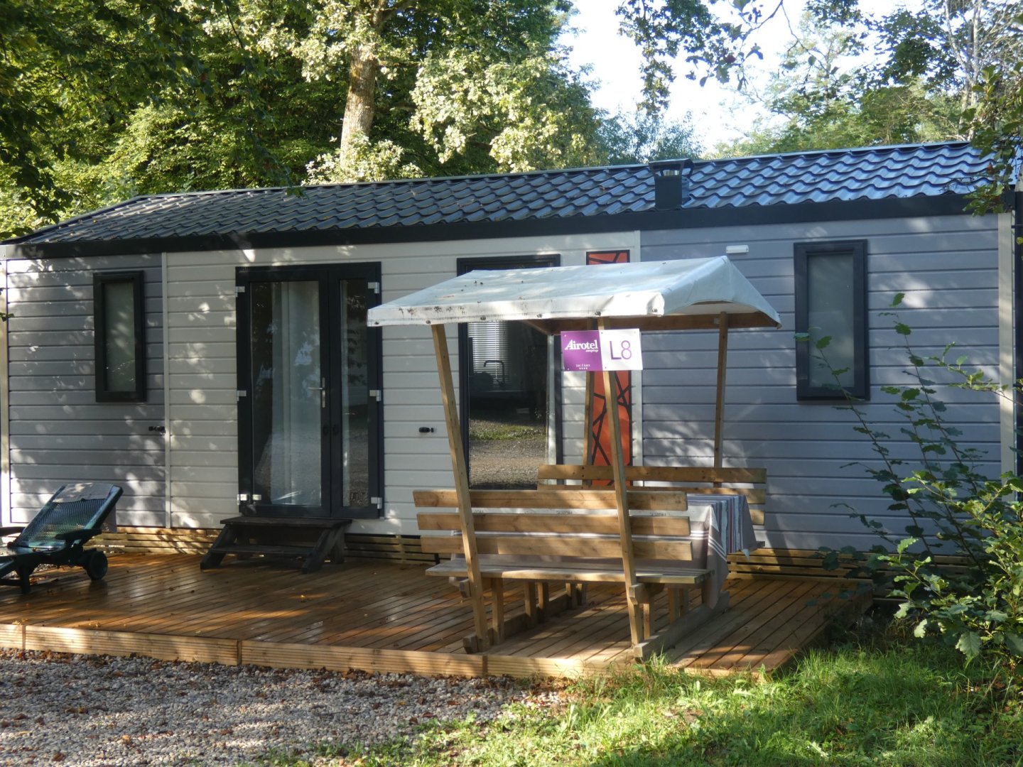 L'agencement de ces nouveaux mobil -homes en font un grand hébergement très tendance. À l'extérieur se trouve une grande table couverte en bois qui permet de manger dehors. Ils sont situés à proximité de la piscine ou le long de la rivière.
